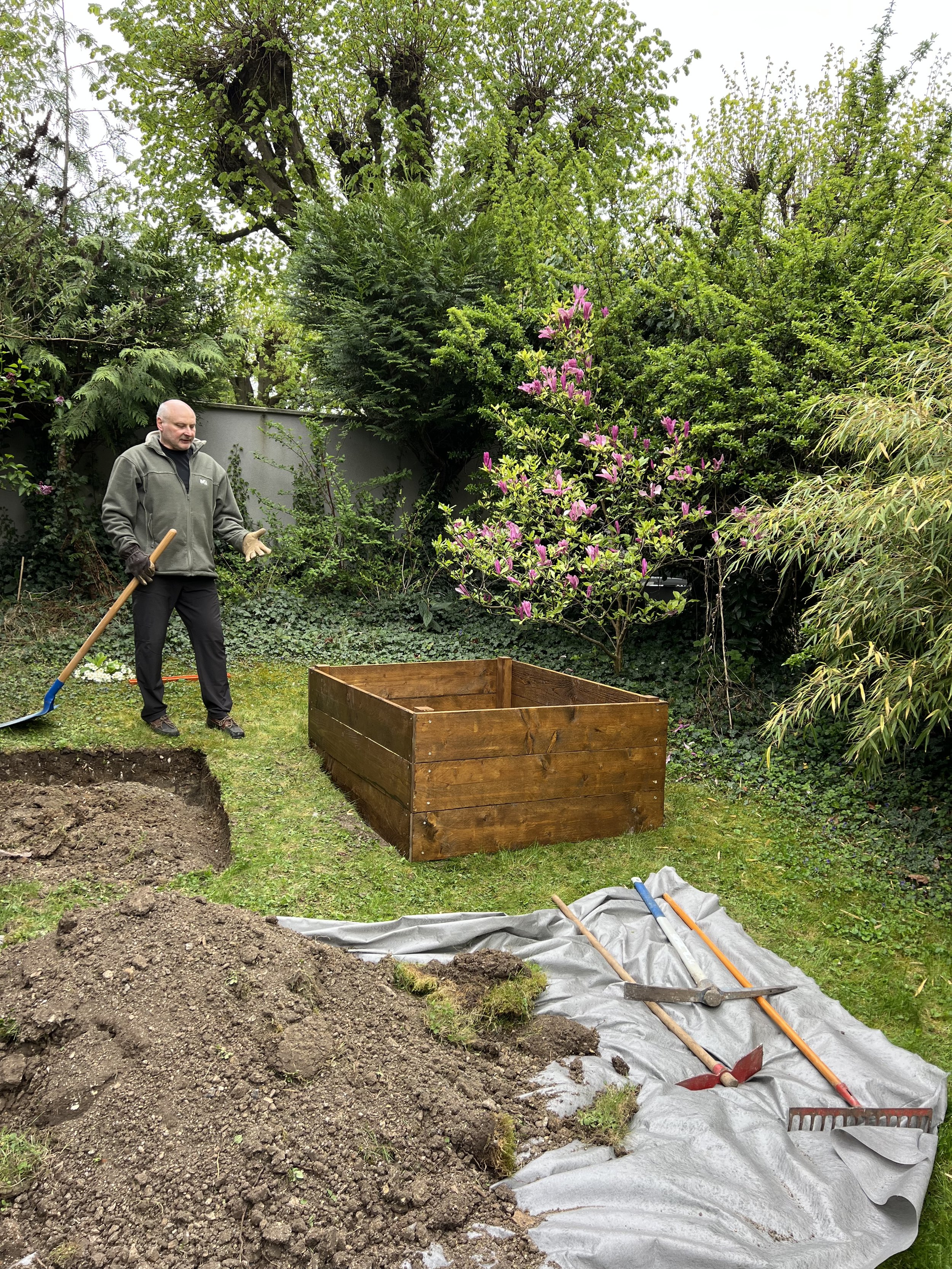 Décaissement du sol et mise en place des bacs