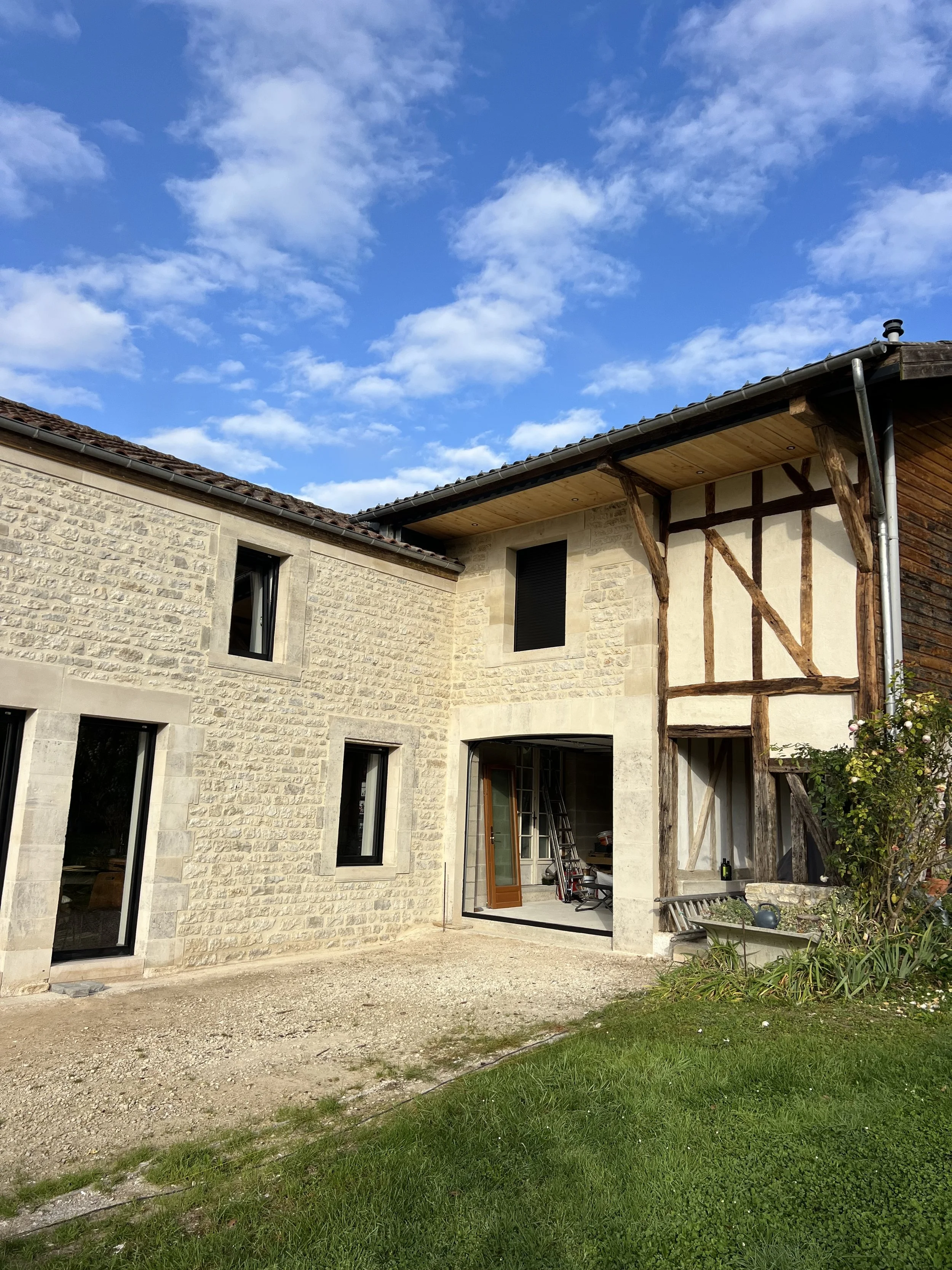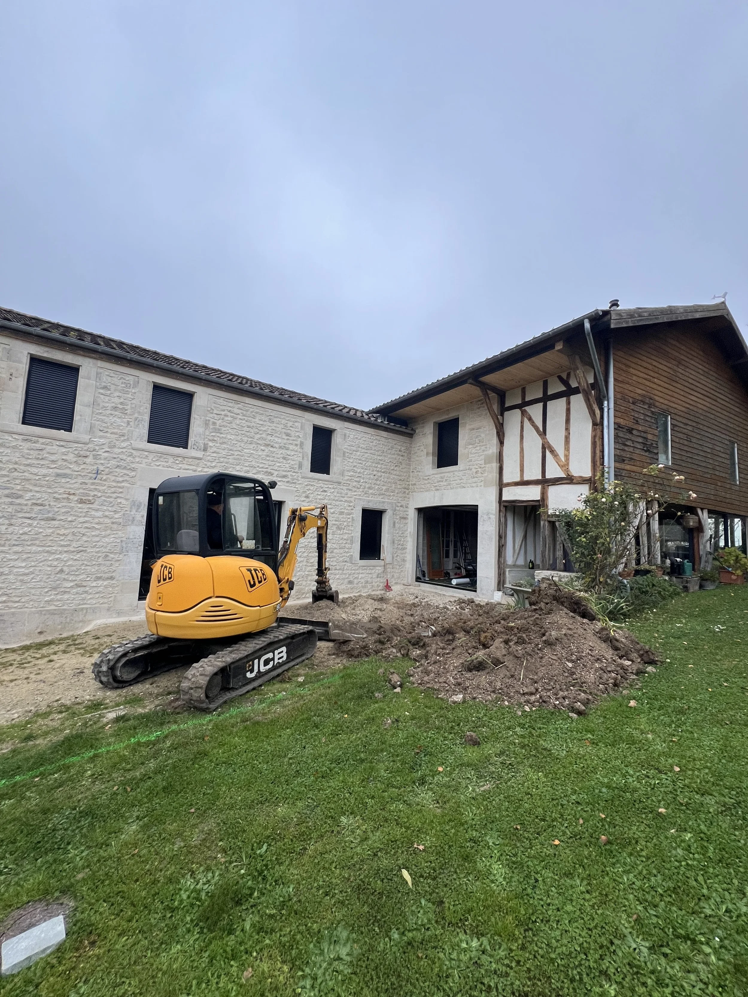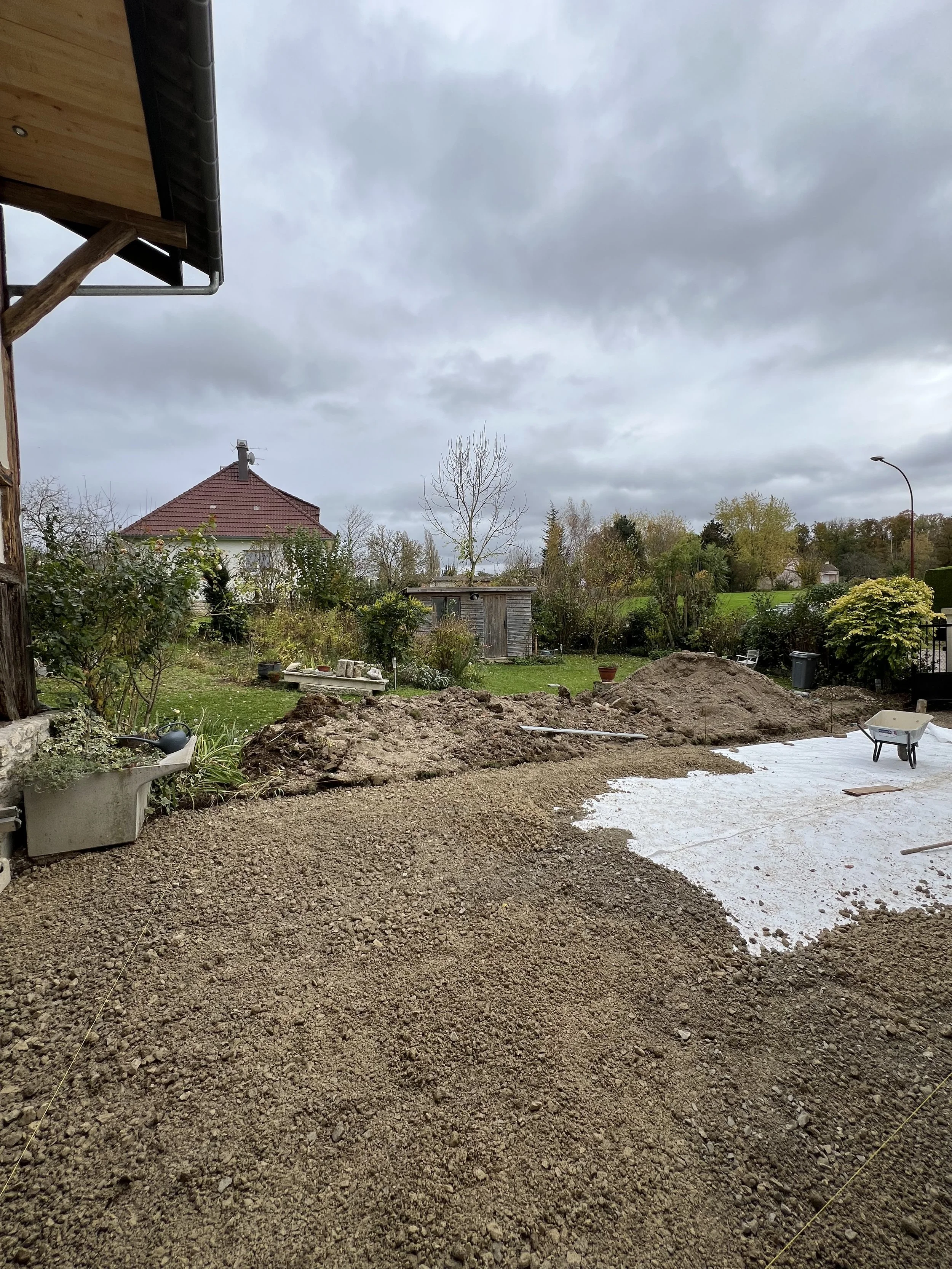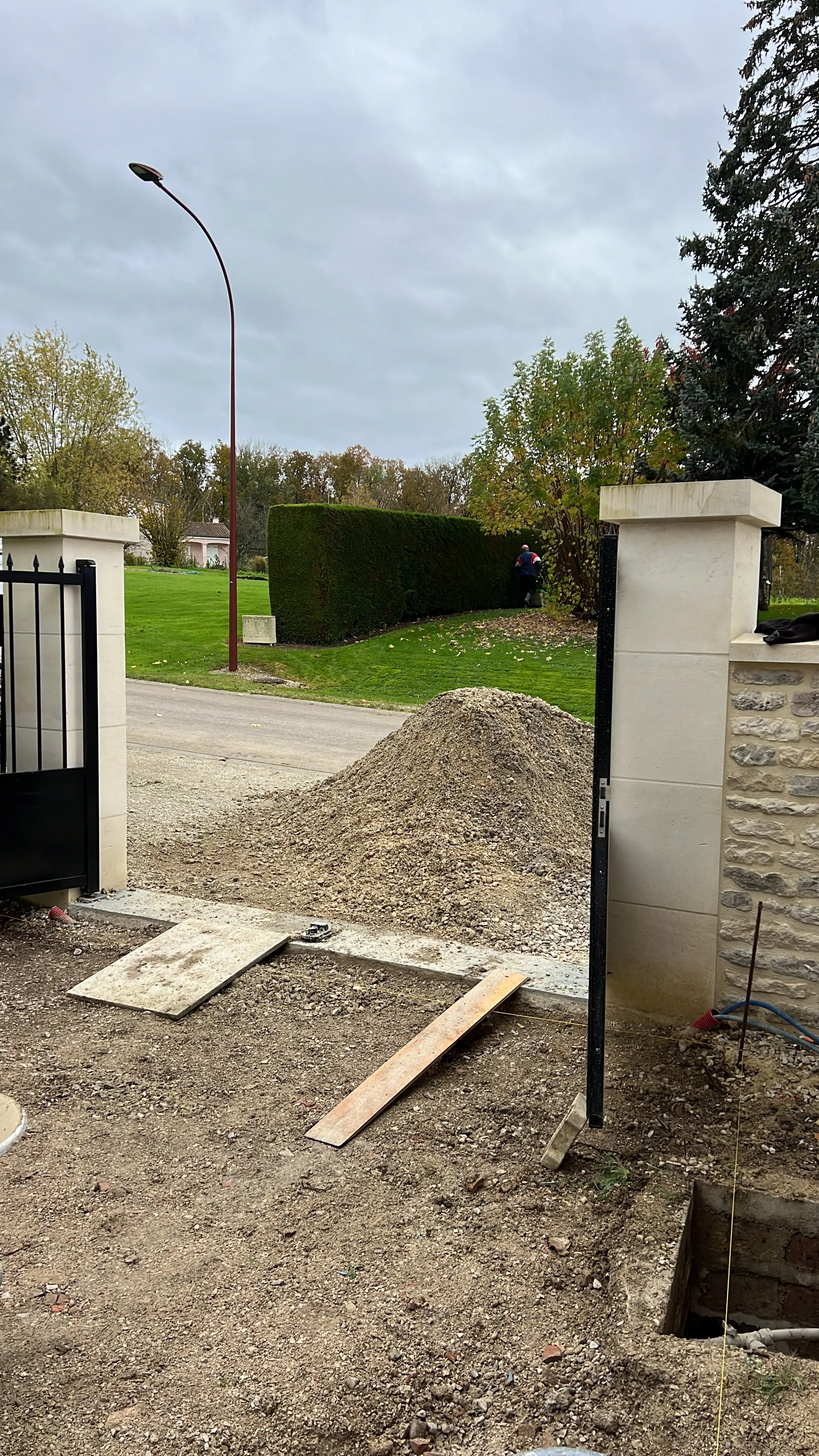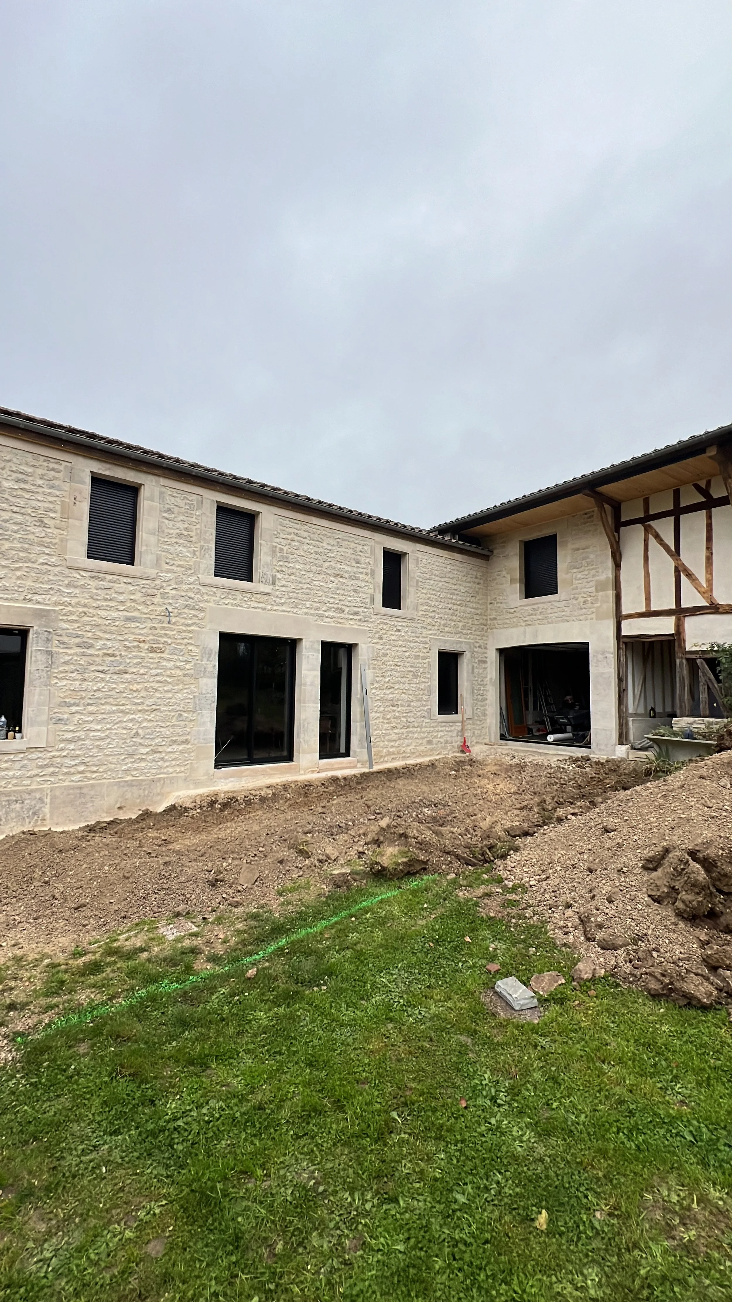 Cette cour consistait en la réalisation de 80 m² de pavage en pierre naturelle. Le revêtement a été choisi pour s’accorder avec la façade en pierre de la maison, créant ainsi une harmonie entre l’aménagement extérieur et l’architecture existante.